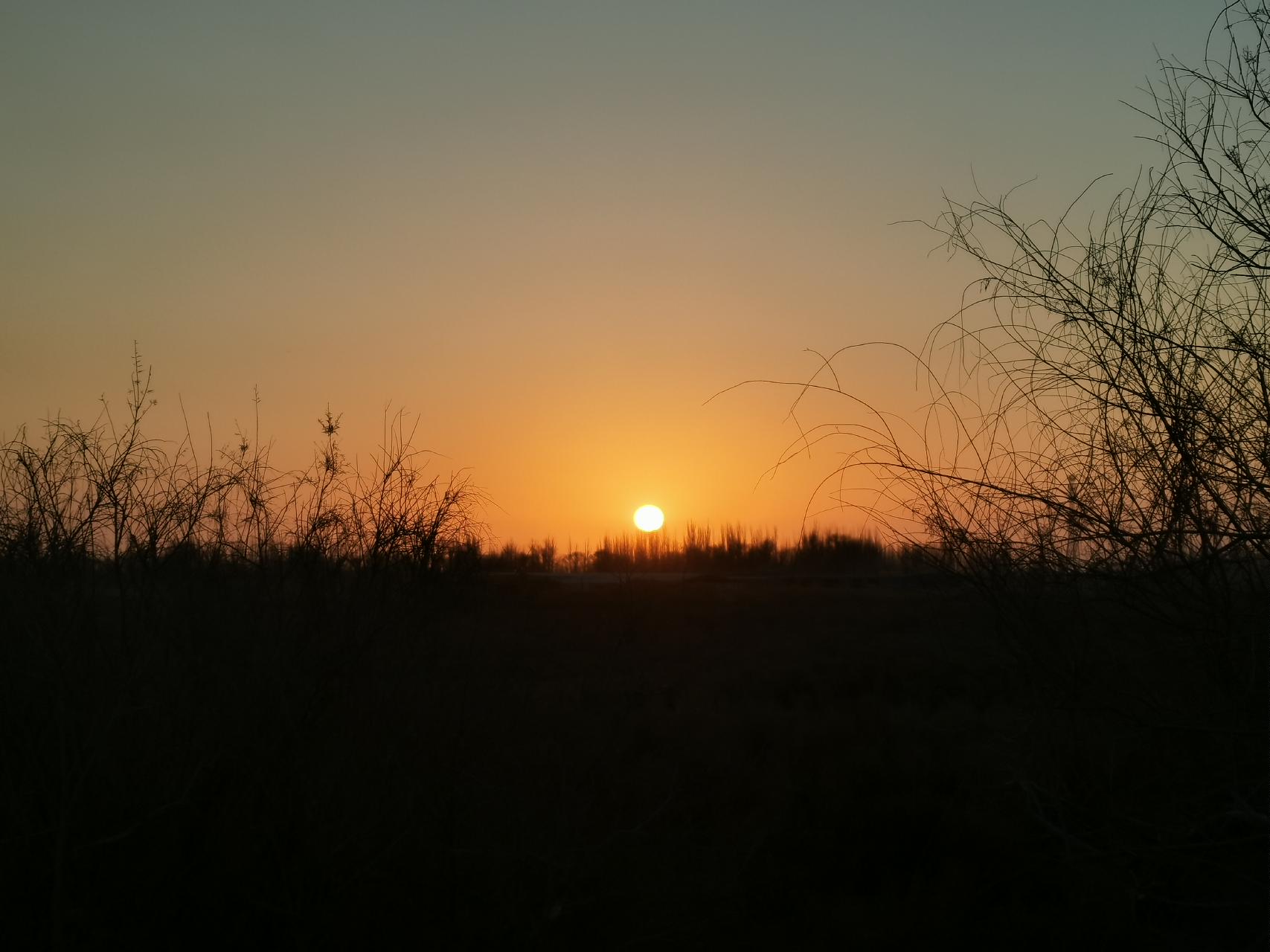 坟院的西侧红柳间隙正好能够看到初升的太阳,那一刻死亡和新生同在。